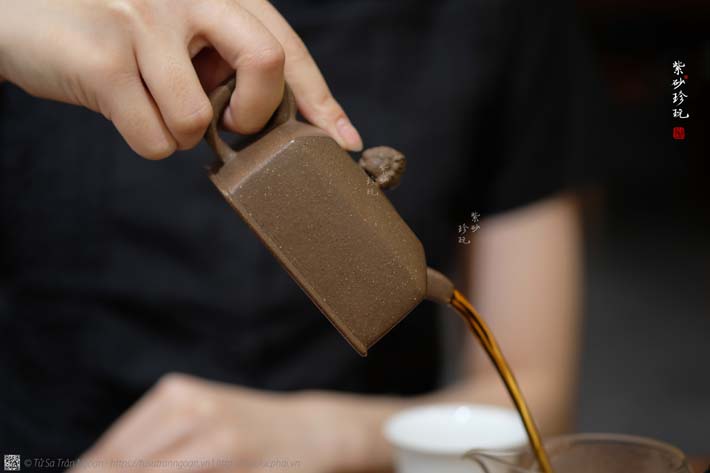 Trà Phổ Nhĩ cần nhiệt cao để đánh thức lá trà. Ấm tử sa với kết cấu đất xốp giúp giữ nhiệt ổn định, “giữ hồn” hương vị và làm cho vị trà thêm chín, thêm dày. Nhiều người chơi trà lâu năm đều dành riêng một ấm tử sa chỉ để pha Phổ Nhĩ, bởi sau nhiều lần pha, lớp trà thấm vào thành ấm, càng làm nước trà thêm phong phú.