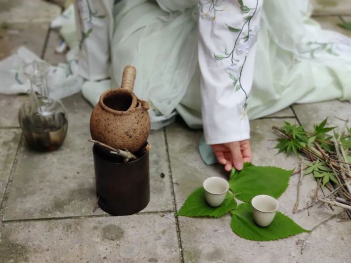 - Tối giản: Chọn một tảng đá phẳng hoặc bãi cỏ khô ráo, trải tấm khăn vải hoặc thảm trà để ngồi bệt. Cách này giúp bạn gần gũi với thiên nhiên, cảm nhận rõ ràng hơn sự hòa hợp giữa trà và môi trường xung quanh.