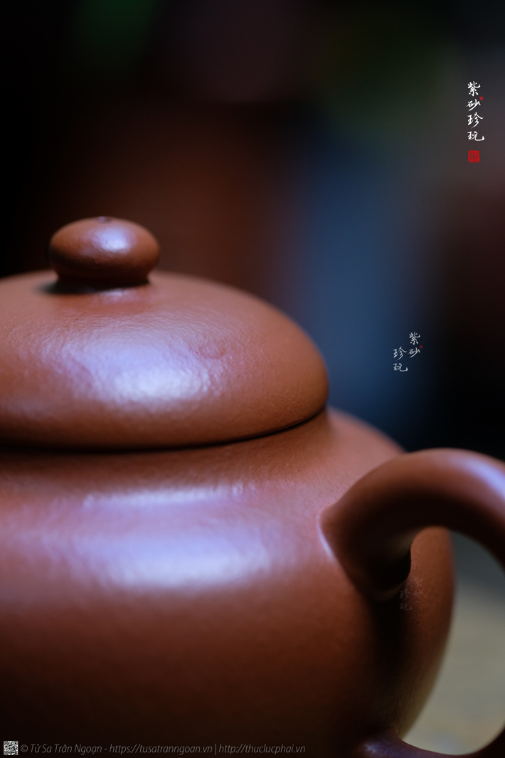 Nắp ấm ôm khít lấy thân, đảm bảo khi rót trà, dòng nước chảy ra gọn, mượt, không vương giọt. Đây là chi tiết thể hiện kỹ nghệ khéo léo, cũng như sự tỉ mỉ trong từng công đoạn chế tác.