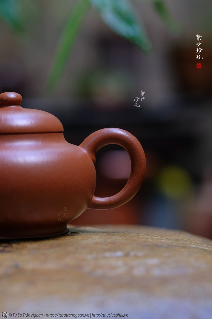 Tay cầm được tạo tác dứt khoát, mạnh mẽ nhưng vẫn êm ái khi cầm nắm. Tỷ lệ cân xứng giữa thân, vòi và quai mang lại sự thoải mái cho người thưởng trà, đồng thời khẳng định cái nhìn tinh tế của nghệ nhân trong việc kết hợp công năng với thẩm mỹ.