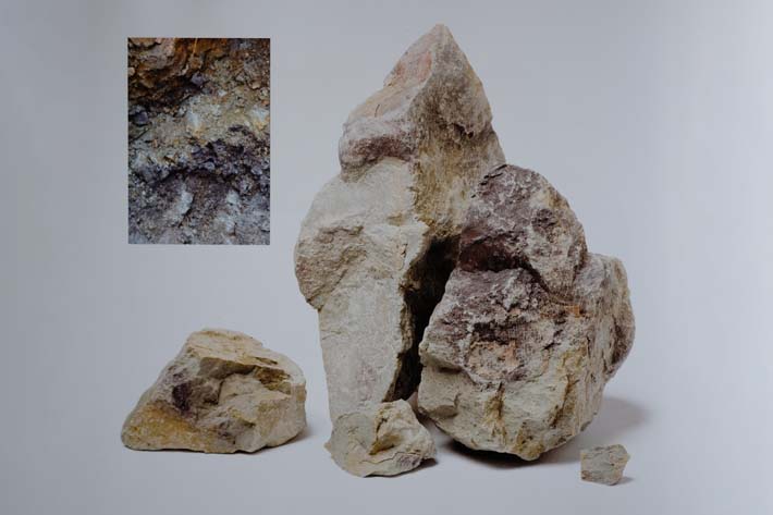 Khai thác ở phần dưới của tầng Hoàng Thạch nông. Khoáng liệu có hình thái đồng sinh, kết hợp giữa Tử Nê và Lục Nê, kết cấu rắn chắc như đá, chứa một lượng nhất định mảnh vụn mica trắng, bề mặt có vết đen và loang gỉ sắt.