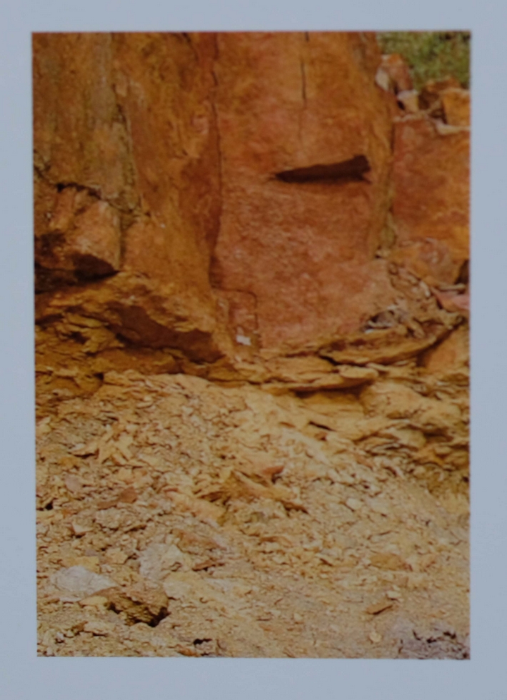Nằm ở phần dưới tầng đá Hoàng Thạch, hàm lượng khoáng vật tương đối ít. Quặng có bề ngoài màu đỏ vàng nhạt, kết cấu đất sét đặc khối, dễ vỡ, không cứng chắc, trên quặng có các đốm màu đỏ thẫm.
