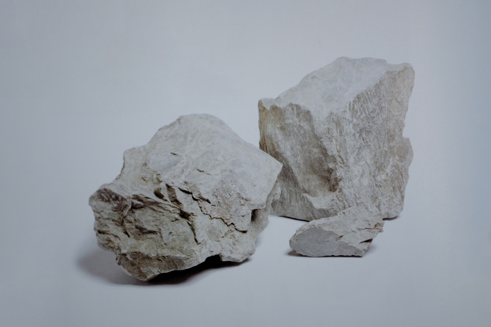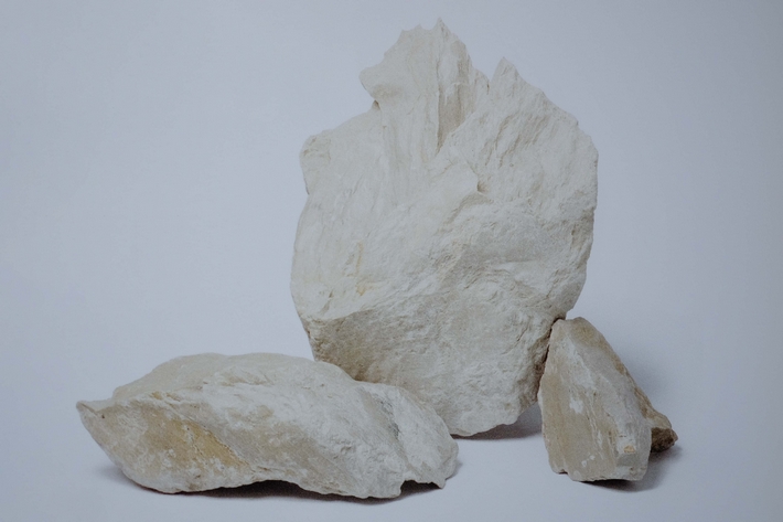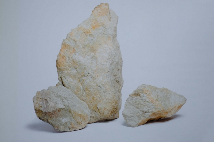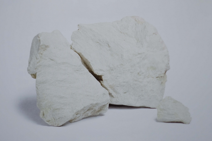 Khai thác tại mỏ lộ thiên thôn Đài Tây. Bề ngoài màu xanh nhạt hoặc xanh xám nhạt, kết cấu mềm, dạng khối đặc, chất mịn không đều, dễ vỡ, không cứng, bề mặt có vệt nhuộm đỏ sắt.