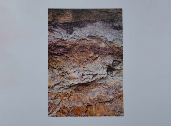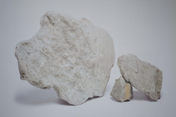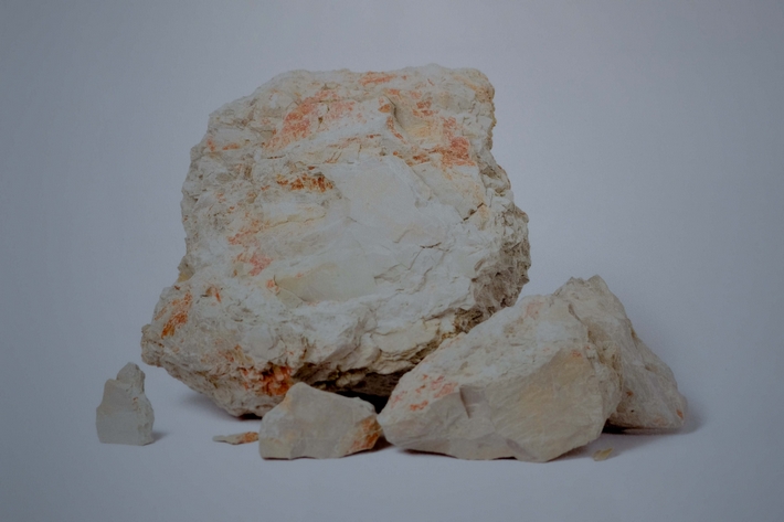Khai thác tại phần dưới của tầng đất khoáng (trong hình trên bên phải). Khoáng chất có bề ngoài màu xanh nhạt, dạng khối đặc, hơi cứng, bề mặt có mảng gỉ.
