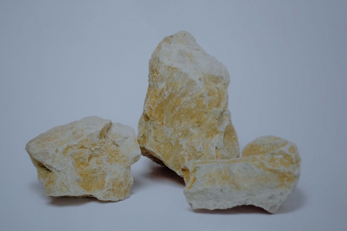 Khai thác ở phần dưới tầng khoáng (trong hình), trữ lượng rất ít. Bề ngoài đồng đều, mịn, màu xanh nhạt, khối đặc, dễ vỡ, không cứng.
