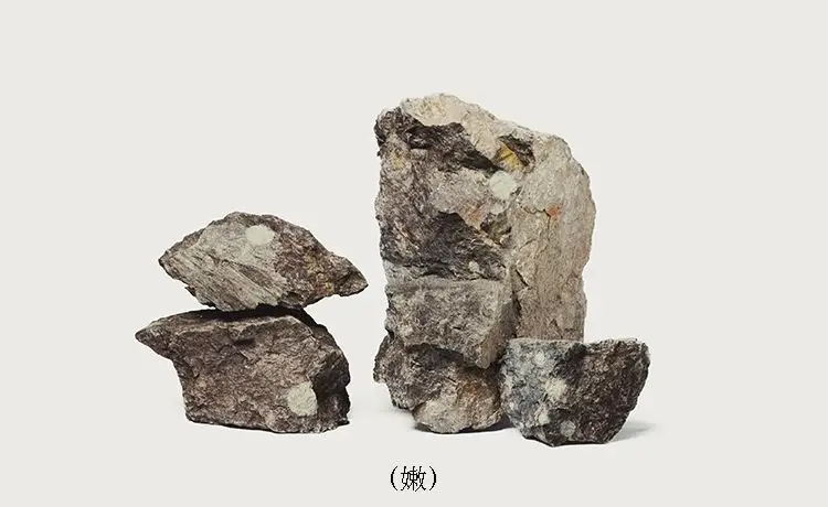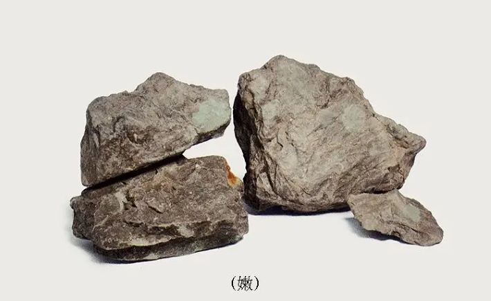 Sản xuất tại mỏ lộ thiên thôn Đài Tây. Khoáng liệu có bề ngoài dạng khối đặc, màu tía nâu, khá cứng, chứa một lượng nhất định các mảnh mica trắng, trên bề mặt xuất hiện các đốm xanh lục dạng hạt đậu.