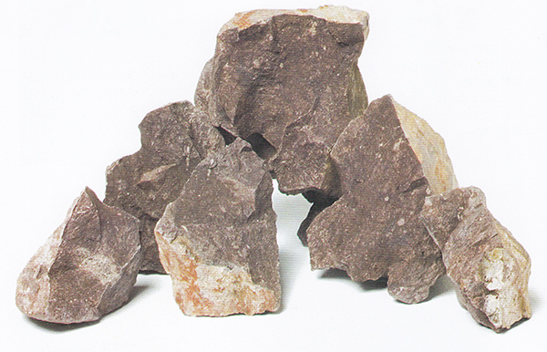 Khoáng chất có màu nâu tím, dạng khối đặc, hơi cứng nhưng dễ vỡ, chứa một lượng mica trắng nhất định. Một số mẫu khoáng có các vân sọc xanh xám nhạt, tạo nét sinh động nhẹ nhàng cho bề mặt.